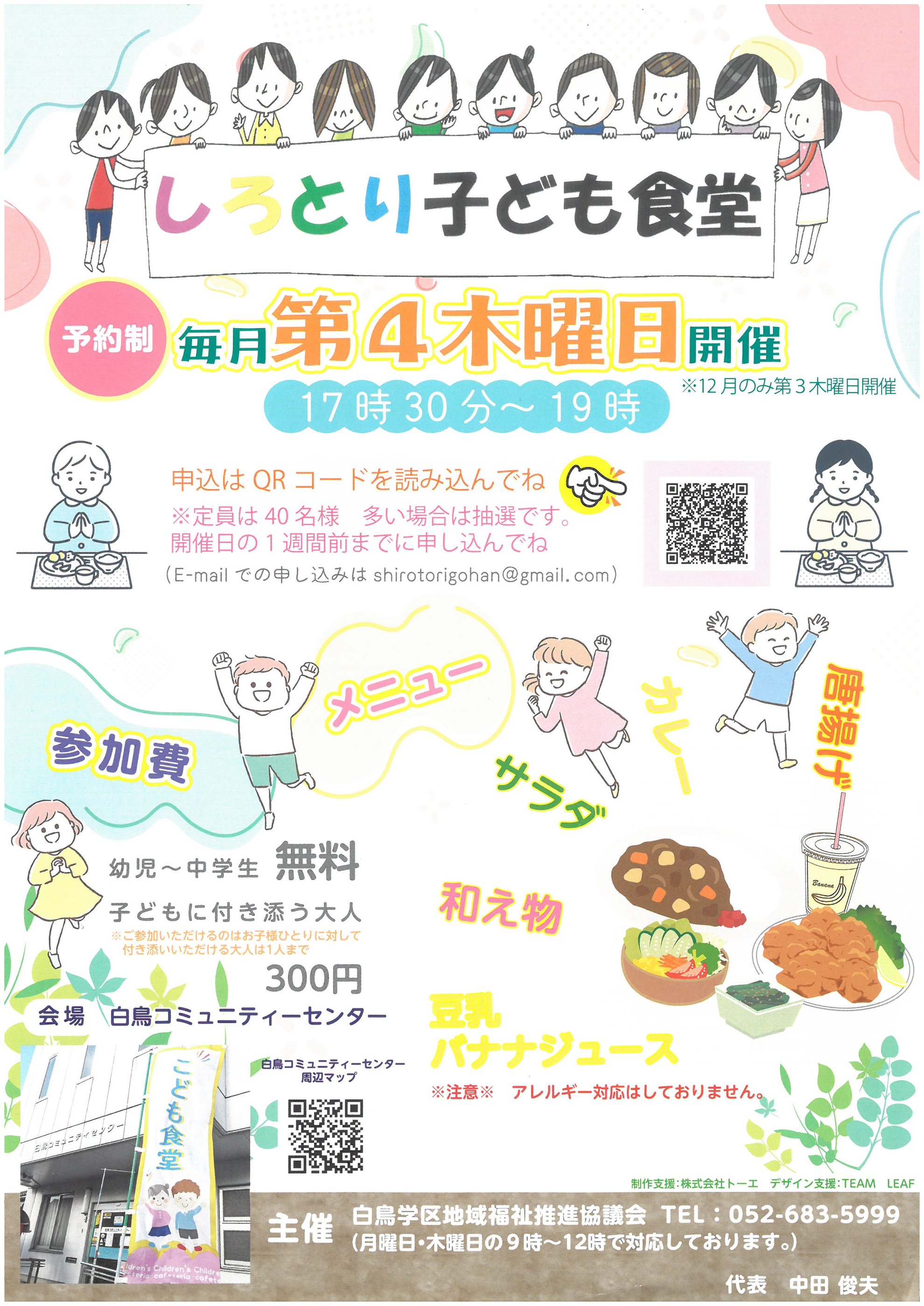 主旨 子どもの孤食を防止し、安心して食事ができる機会を提供することを通じて、子どもの健やかな成育を支援する。 開催日 1回/月 第4木曜日(12月は第3木曜日) 次…